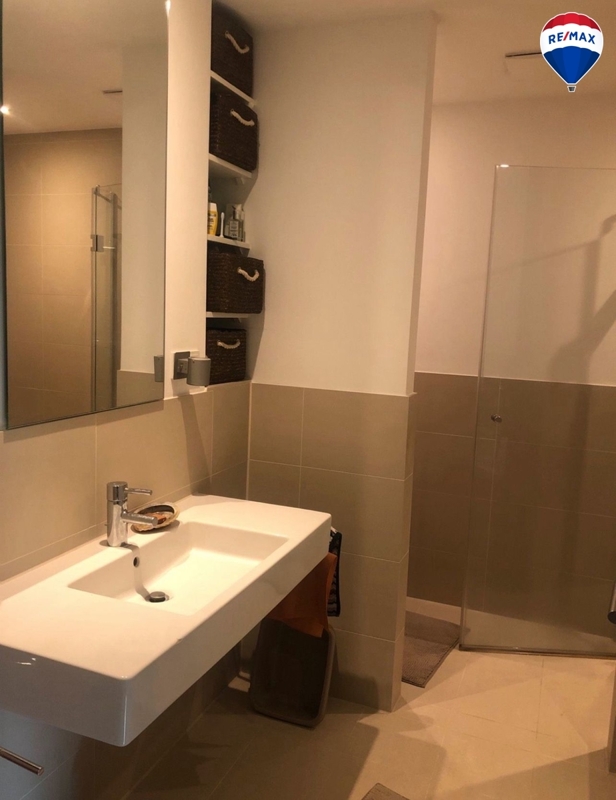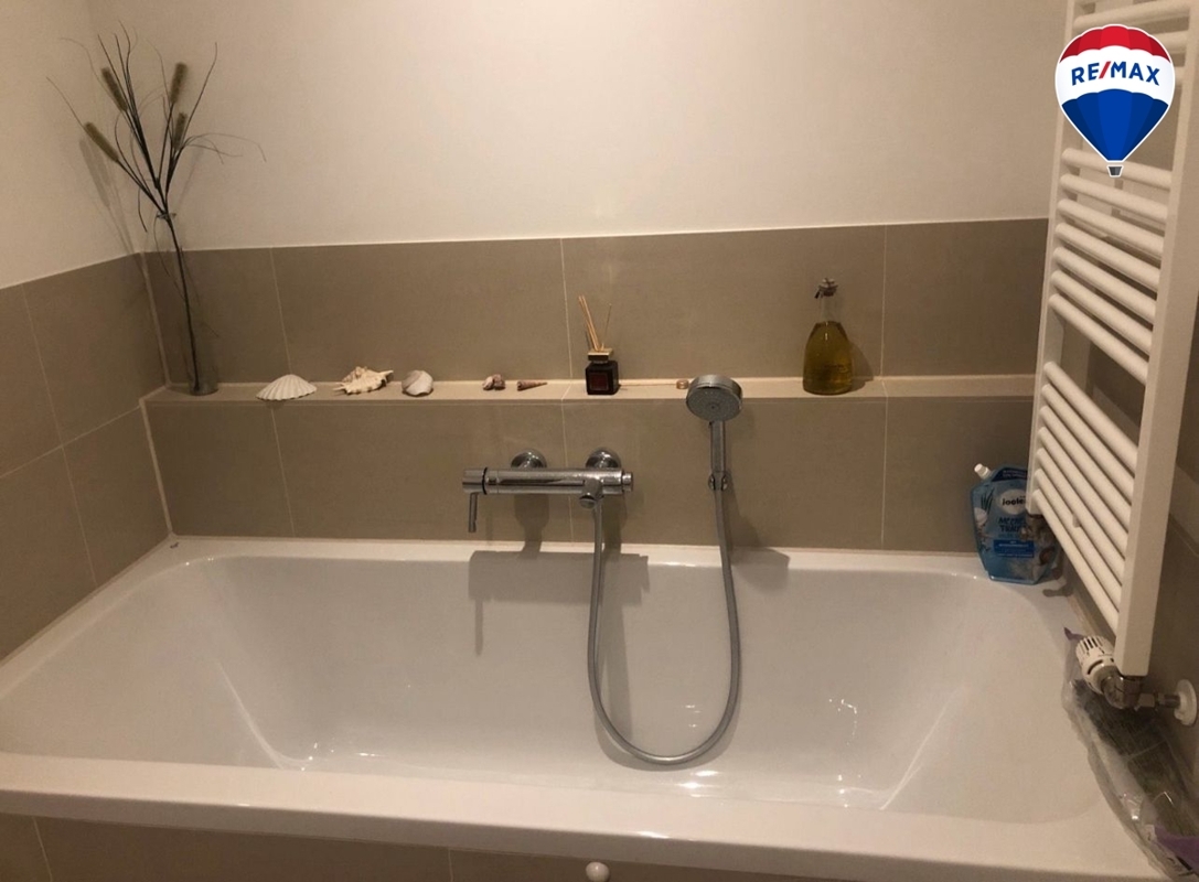 Gleich links liegt das moderne Gäste-WC, gegenüber das Schlafzimmer mit großem Einbauschrank. Direkt angrenzend befindet sich das luxuriöse en suite Badezimmer mit Badewanne, ebenerdiger Dusche und beheiztem Handtuchhalter – perfekt für entspannte Wellness-Momente.
