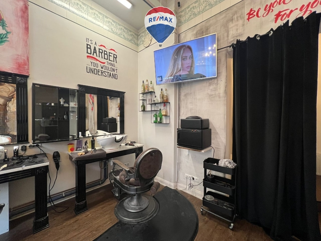 Aktuell ist der Salon als Barbershop eingerichtet, eignet sich jedoch genauso gut als Unisex-Salon für Damen- und Herrenfrisuren. Die großzügigen Öffnungszeiten von 9 bis 21 Uhr täglich (mittwochs Ruhetag) sprechen für ein eingespieltes Konzept mit großem Potenzial und bestehender Stammkundschaft.