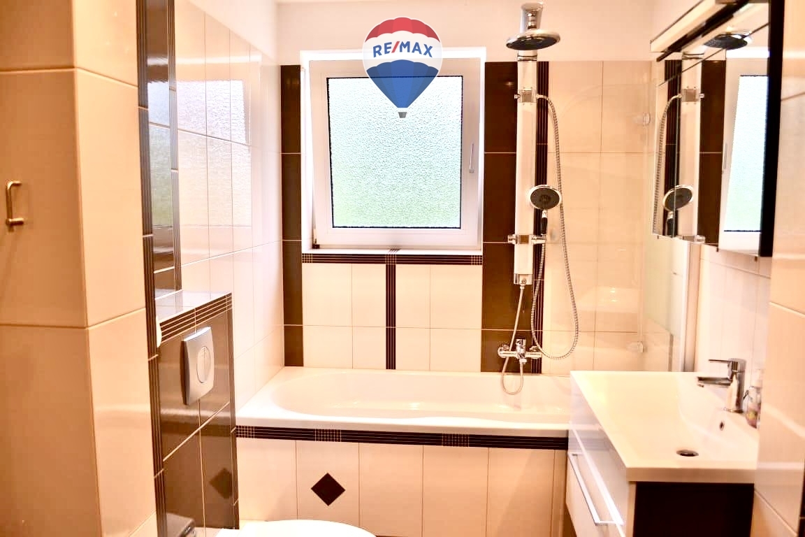 Die Ausstattung der Wohnung umfasst eine moderne Einbauküche mit Dunstabzugshaube, einen Balkon, ein Bad mit Badewanne sowie einen Laminatboden in den Wohnräumen und Fliesenböden in Bad und Küche. Durch die großzügigen Fensterfronten wirken alle Räume hell und offen, während moderne Pocket-Lichter im Wohnzimmer für ein angenehmes Lichtkonzept sorgen. Ein Kellerabteil bietet zusätzlichen Stauraum.
