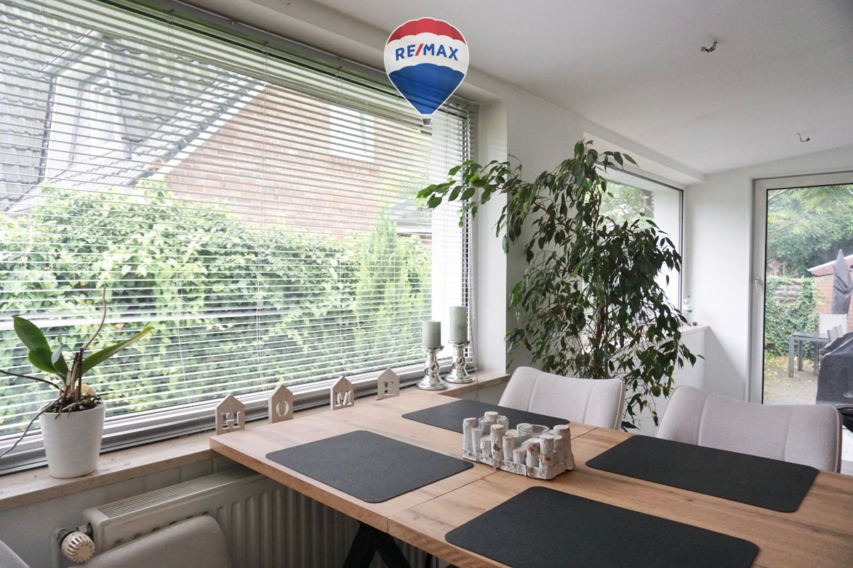 Über eine kleine Treppe erreichen Sie den Eingang mit praktischem Windfang. Das großzügige Wohnzimmer überzeugt mit elegantem Lichtkonzept und einem gemütlichen Kaminofen, der eine behagliche Atmosphäre schafft. Der lichtdurchflutete Wintergarten schließt direkt an und bietet einen herrlichen Blick in den Garten. Von hier aus gelangen Sie auf die sonnige Südterrasse – perfekt zum Entspannen oder für gesellige Stunden.