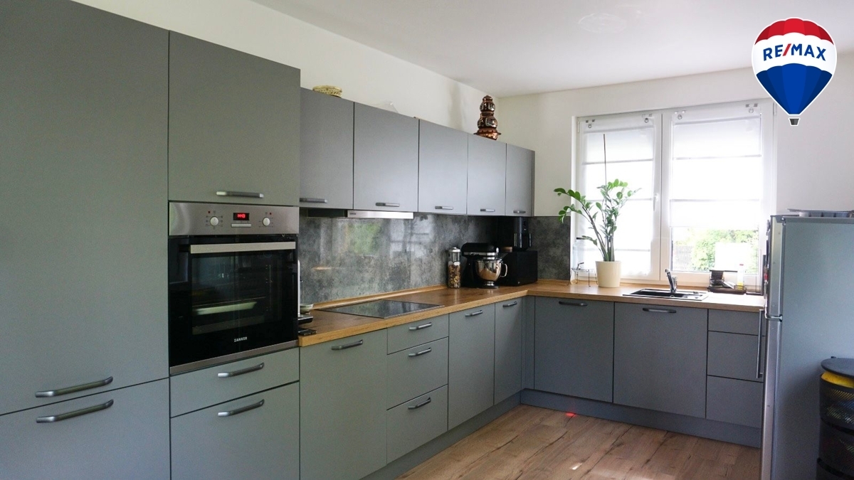 Die hochwertige Ausstattung sorgt für Komfort und Sicherheit: Eine Photovoltaikanlage unterstützt nachhaltige Energiegewinnung, während Fußbodenheizung und moderne Wärmepumpe für angenehme Wärme bei niedrigen Heizkosten sorgen. Elektrische Rollläden bieten Schutz und Bequemlichkeit und die wandeingelassene LED-Spots schaffen eine helle und freundliche Atmosphäre. Die moderne Einbauküche mit hochwertigen Geräten und die Einzelraum-Temperaturregelung bieten zusätzlichen Komfort. In jedem Zimmer sind zwei Internetanschlüsse vorhanden, und ein Stromanschluss für Elektroautos auf der Auffahrt sorgt für zukunftsorientierte Flexibilität.