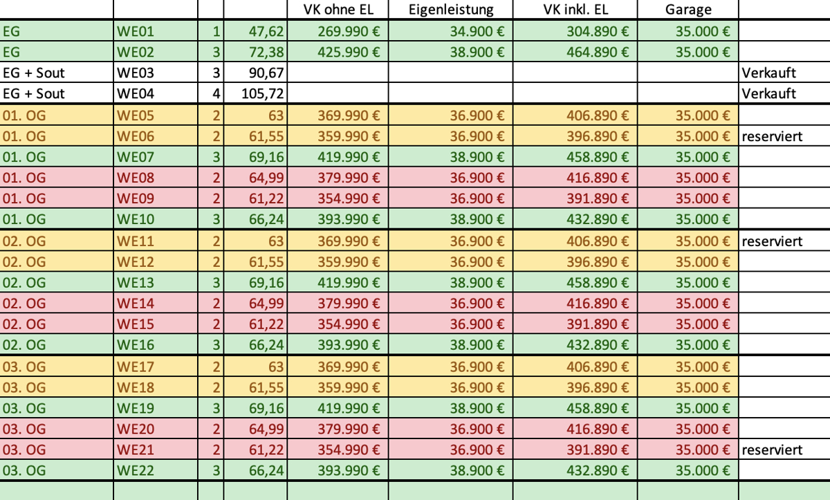 *Die Wohnung wird verkauft mit Eigenleistungsanteil für folgende gewerke: Bodenbeläge, Malerarbeiten innnen, Küche, Innentüren. Der Grund dafür ist, dass Sie nach Ihren wünschen indivieidel entscheiden möchten oder können. Auf wunsch können sie Eigenleistungsanteil nach Ihren wünschen durch den Bauträger machen lassen.