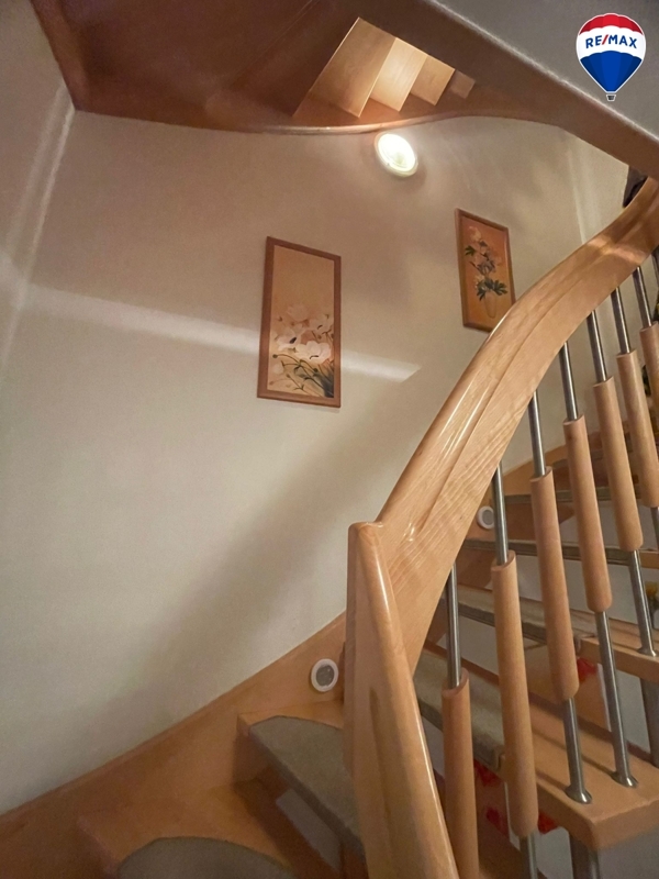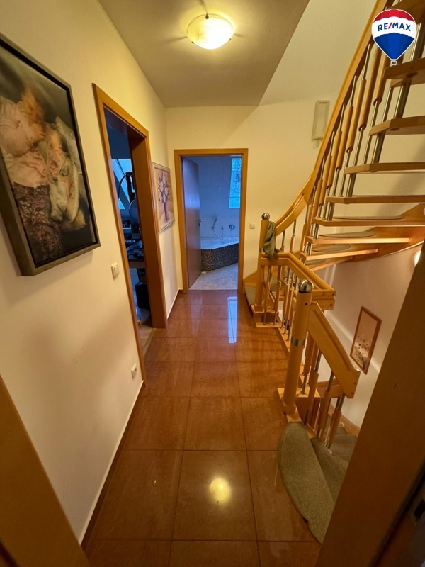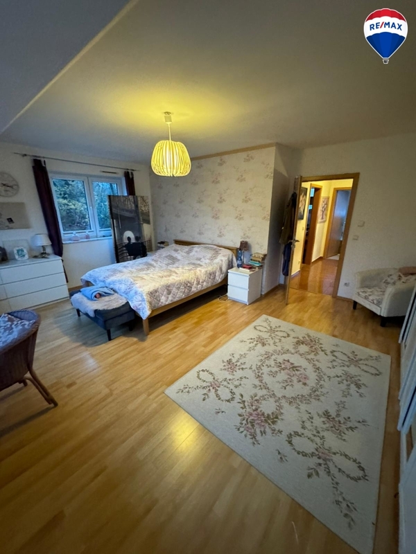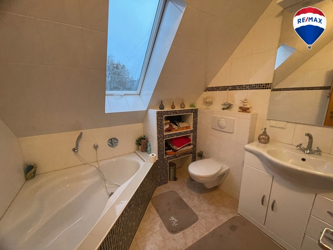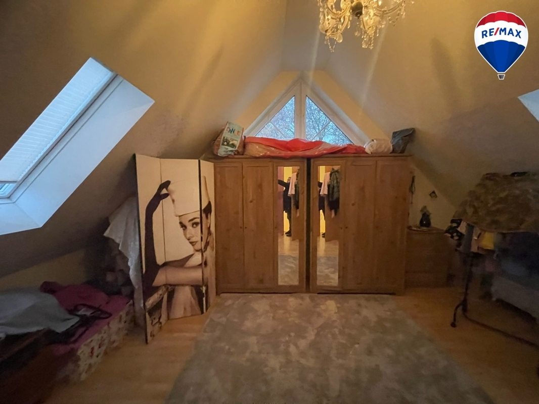 Im Obergeschoss finden Sie ein Badezimmer mit einer großen Eckbadewanne und Fenster sowie drei Schlafzimmer. Große Fenster sorgen für ausreichend Helligkeit und eine freundliche Atmosphäre.