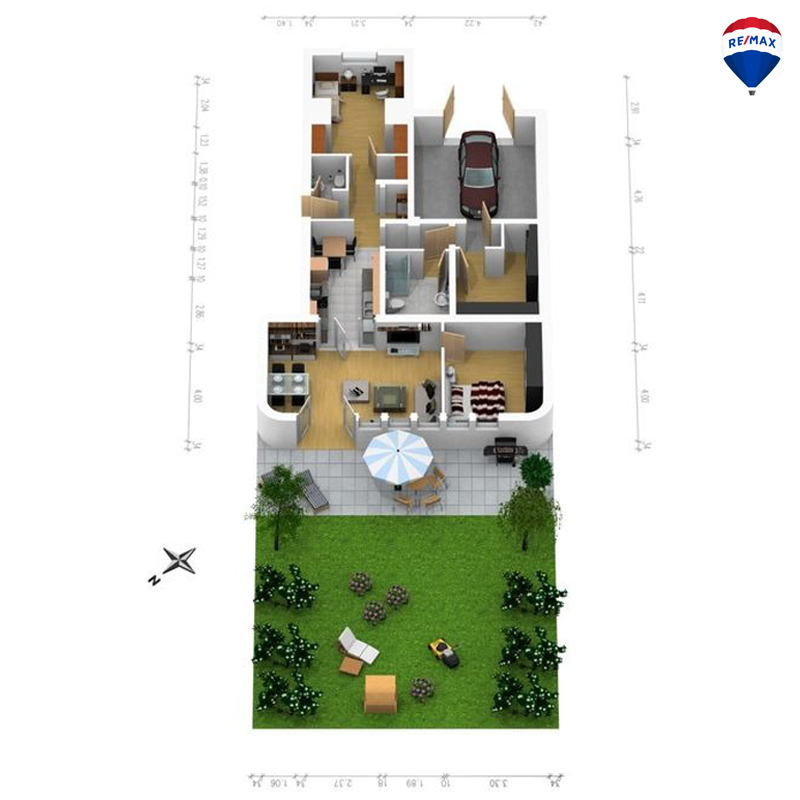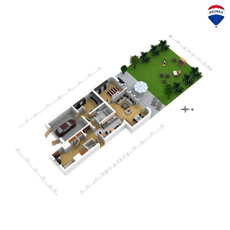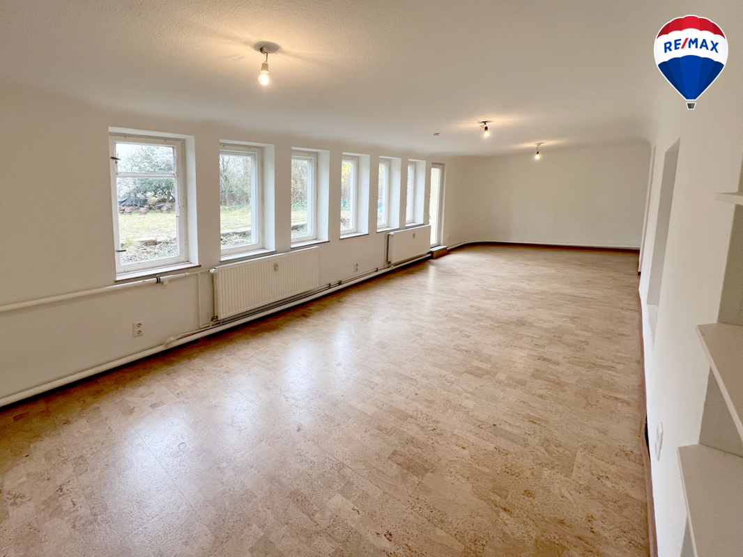 Durch entfernen des Garagentors und Einbau eines Fensters in der Garage, besteht allerdings die Möglichkeit, die Wohnung nochmals um ca. 20 m² zu vergrößern, sollte Ihnen der vorhandene Wohnraum nicht reichen.