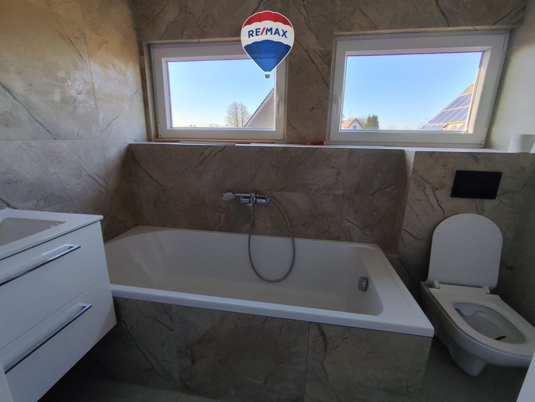 • Separates Badezimmer im Obergeschoss mit Badewanne