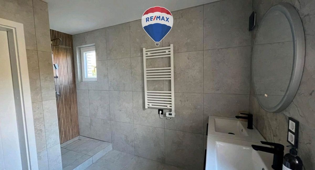 • Sehr großes Gäste-WC im Erdgeschoss mit Dusche und zwei Waschbecken