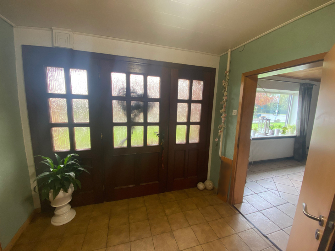 Durch den Haupteingang gelangen Sie in den großzügigen Flur. Von diesem geht es zur Linken in den Wohn- und Essbereich, zur Rechten in das Badezimmer mit Dusche. Geradeaus gelangen Sie in die Wohnküche, von der ein weiteres Zimmer, derzeit als Abstellraum genutzt, abgeht. Von der Küche aus haben Sie Zugang zu Innenhof und Garten.
