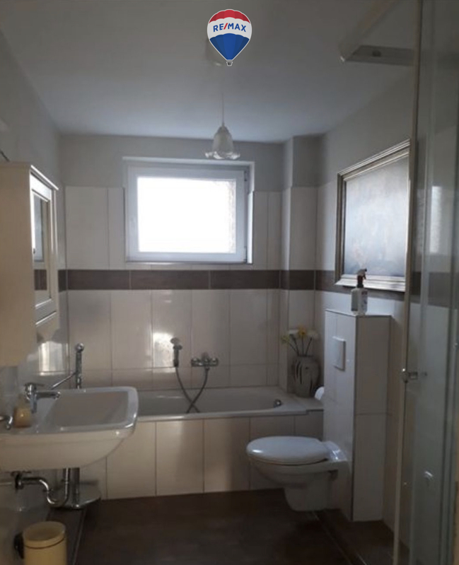 – Erdgeschoss mit drei Zimmern ca. 92 m², Küche, Bad, Balkon und Abstellkammer